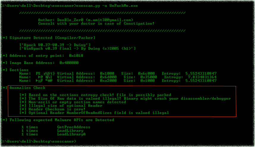 Display the type of file (EXE/DLL). Listing of export table. Store the reports in more organized way with MD5 hash name for that folder. |