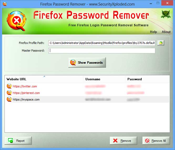 Firefox Password Remover is designed to help users to protect their privacy and online security by recovering & removing the password from Firefox login database.