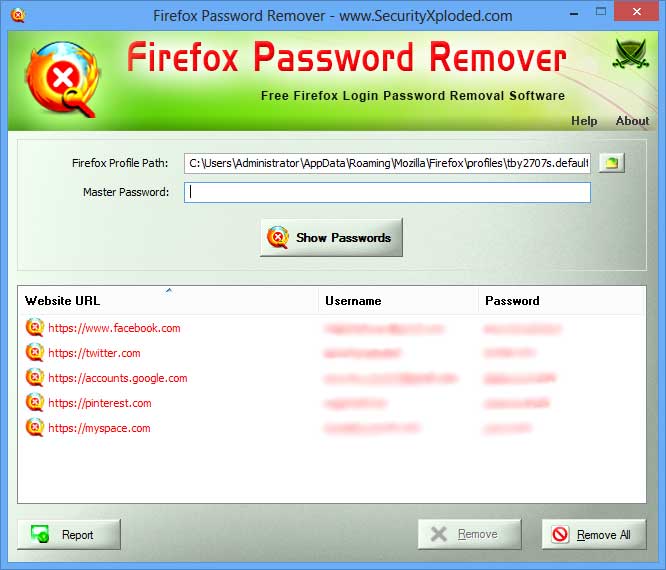 One of the unique feature of this tool is that it allows you to remove the website passwords even if it is protected with Master Password.