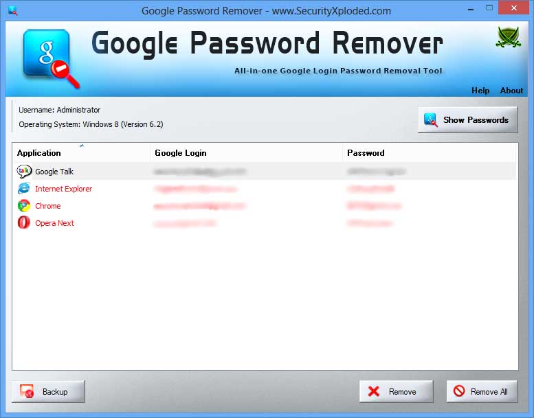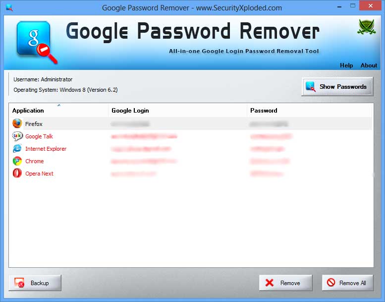 Google Password Remover is the free all-in-one tool to quickly remove the stored Google Login passwords from your system. |