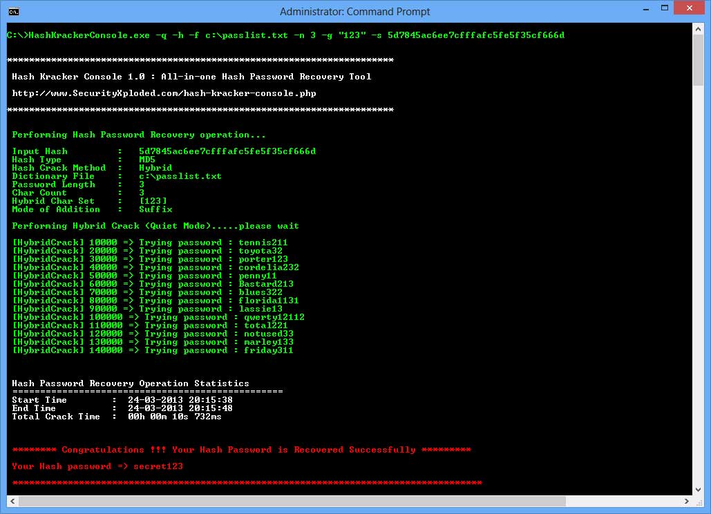 Hash Kracker Console is designed with good intention to recover the Lost Password.