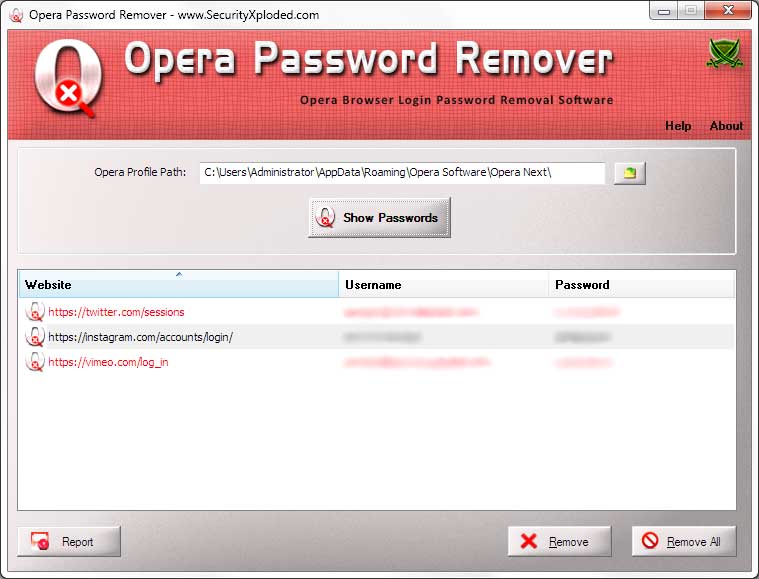 Opera Password Remover is the free tool to quickly remove the stored website login passwords from all versions of 'Opera Next' web browser.