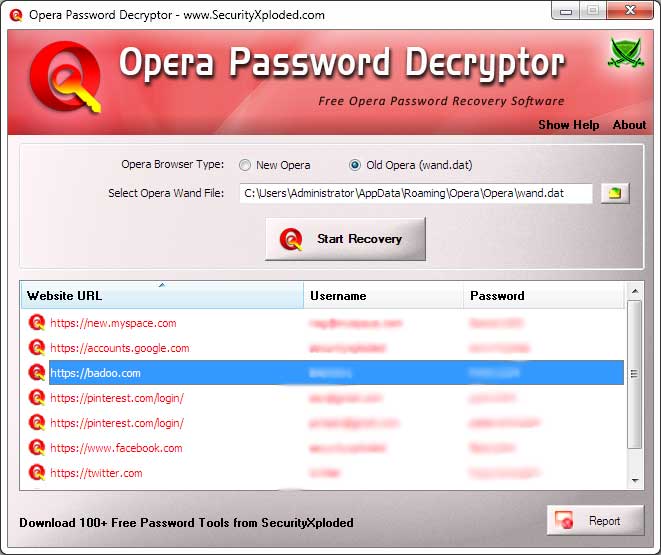 Opera Password Remover : Free Opera Website Login Password Removal Tool | www.SecurityXploded.com