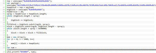 It is essentially spraying heap with NOP sled and shellcode and calling the vulnerable function. The shellcode present here is a dropper/downloader, you can dump it to a file and use IDA to disassemble it.