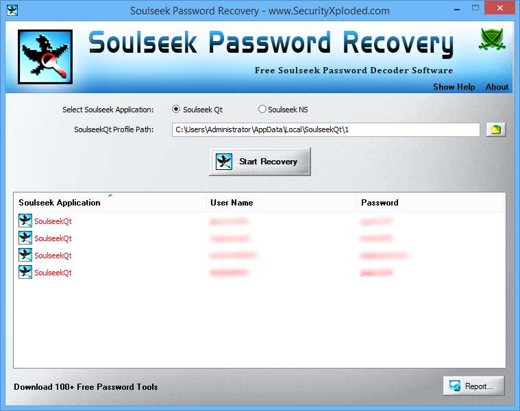 Screenshot 1: Soulseek Password Recovery is showing all the recovered login passwords from Soulseek Qt