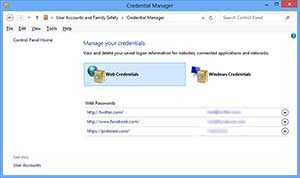 Credential Manager (or Windows Vault) allows applications to securely store credentials like usernames and passwords which are used to log on to websites or other computers on a network. This way Windows can automatically log you on to websites or other computers.